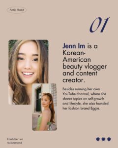 Jenn Im 是一位韓裔美籍的美妝 YouTuber,不僅經營著自己的頻道,分享美妝、生活與心靈成長相關內容,
