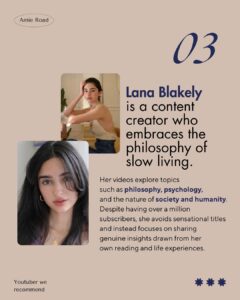 Lana Blakely 是一位強調慢活哲學的創作者。