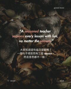 “A seasoned teacher seasons every lesson with fun, no matter the season.” 大家知道這句話怎麼翻嗎? 一個句子裡居然有三個 season,而且意思都不一樣! “Season” 的起源 這個字來自 拉丁文 satio(播種、種植)→ 延伸為「適合播種的時節」。 到 古法語 (Old French) 時變成 seson / saison,意思是「一年中的時期、季節」。 最早進入英文大約在 13 世紀: 👉 season = a suitable time or period for something 意思是「適合某件事的時間」。 🗣️ 例如: It’s the season for harvest.(現在是收成的季節。) In due season = 在適當的時候。 “To season” 動詞的出現 後來英文從「season」延伸出動詞用法: to season = 幫食物調味,使之變得更好吃、更成熟。 所以也有了seasoning(調味料)的意思。 🧂 例子: You need to season the soup with salt and pepper. (要給湯加點鹽和胡椒調味。) “Seasoned” → 經驗老道的 當人「被時間與經驗調味」後,就像一道食物經過火候與調味,變得更香、更穩、更有層次。因此產生了比喻義: seasoned = 經過時間與經驗淬鍊,變得成熟穩重、有判斷力的人。 🗣️ a seasoned traveler(經驗豐富的旅人) 🗣️a seasoned leader(經驗豐富的領導者) 🌿 三種意思一次學 1️⃣ seasoned (adj.) → 有經驗的、老練的 a seasoned teacher = 資深老師 2️⃣ season (v.) → 為食物「調味」 to season a lesson with fun = 給課程加點樂趣 3️⃣ season (n.) → 季節 no matter the season = 無論哪個季節 所以句子 “A seasoned teacher seasons every lesson with fun, no matter the season.” 我們可以翻譯成:一位有經驗的老師,無論在什麼季節, 都懂得讓每一堂課「充滿樂趣」。 是不是覺得英文有點「調味的藝術」呢?就像學英文或教學一樣,當我們越 “seasoned”, 就越知道該怎麼 “season”生活, 讓每個 “season” 都變得有滋有味(笑)